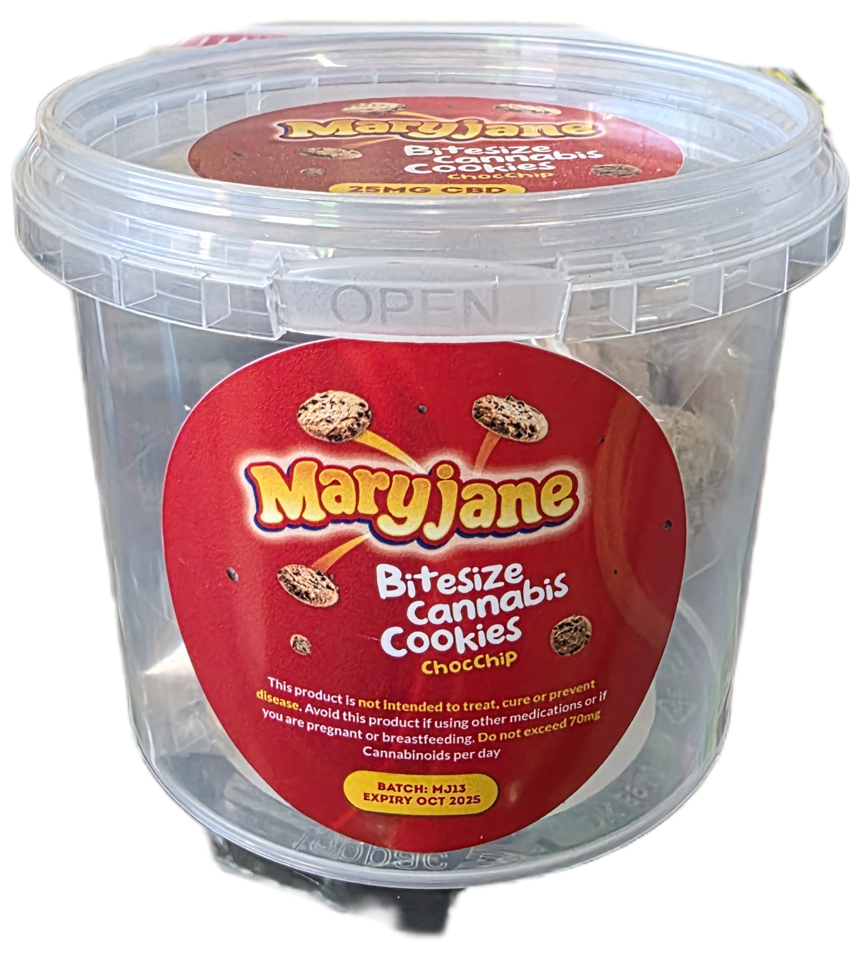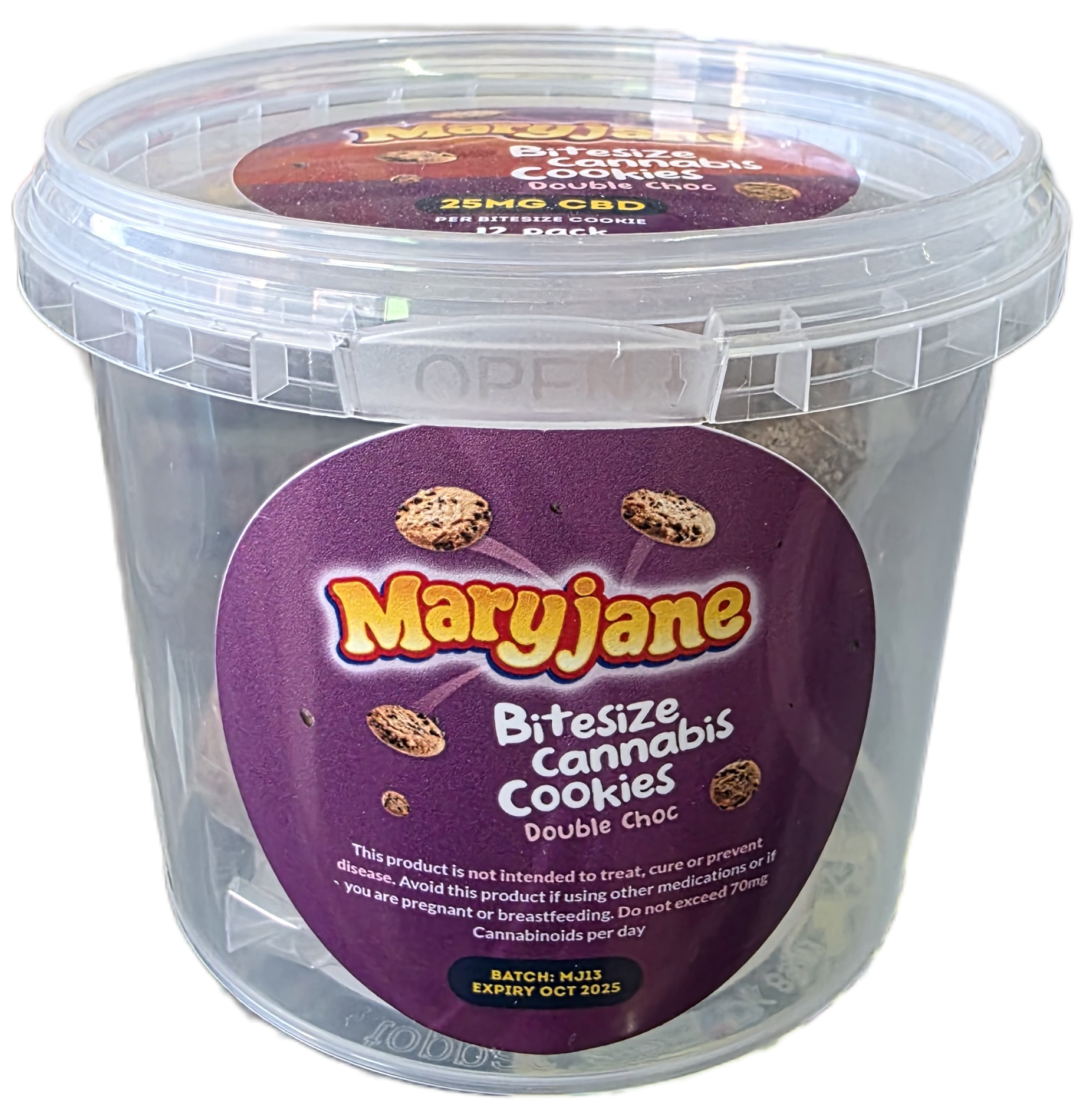 Treat yourself to a moment of blissful balance with MaryJane Bite Size CBD Cookies. Each irresistibly soft, bite-sized cookie is lovingly baked and infused with 25mg of premium, THC-free CBD, offering a deliciously discreet way to unwind. Perfect for an afternoon pause or an evening ritual, these cookies provide a gentle sense of relaxation alongside the simple joy of a home-style treat. Enjoy the rich, buttery flavour knowing you’re indulging in a guilt-free pleasure that supports your wellbeing—without any psychoactive effects. Your sweet escape to calm, one bite at a time.